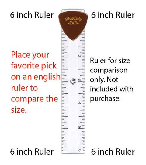 This is the TAD pick in 40/1000th of an inch(1.00mm) thickness. It is the largest Blue Chip pick that we stock. All Blue Chip picks are professionally machined, hand beveled, and laser etched.