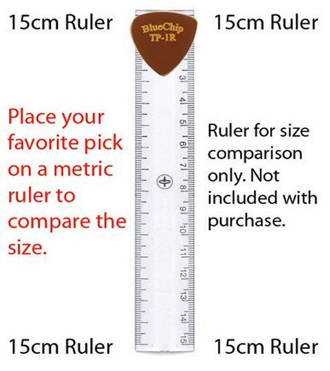 The TP is Blue Chip's classic triangular pick in a 40/1000 of an inch (1mm) thickness with ONE ROUNDED CORNER. All Blue Chip picks are professionally machined, hand beveled, and laser etched.