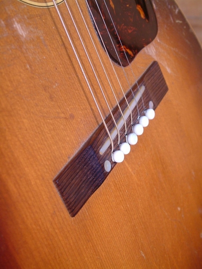 The Gibson LG1 was a ladder-braced 'student-grade' model. Though it doesn't command the respect of the cross-braced LG2 and LG3, many of the 1950s models are surprisingly loud, with good separation, and good build quality - nice tops, and bridges and fingerboards are Brazilian rosewood. They make excellent players and are increasingly sought after as other vintage Gibson acoustics get more and more expensive. They're miles better that the 60s versions, which featured skinny necks, plastic bridges and other such horrors.