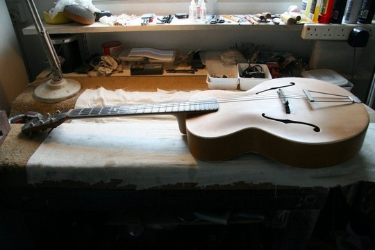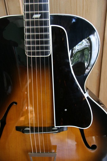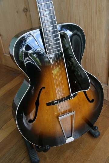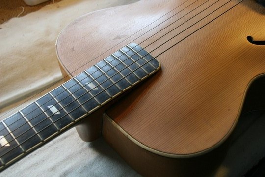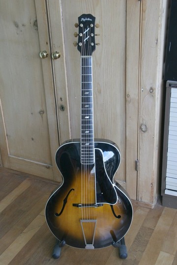 This mid-1930s Radiotone 7812 is the sort of instrument big band jazz guitarists bought in the UK - Gibsons and other high end American instruments were rarely available (or affordable).