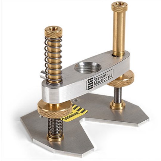 A more stable way to support your Dremel. This sturdy, compact base is the best way to hold a Dremel for freehand routing, inlaying, widening fret slots and more. Made of machined steel, brass and aluminium, it features precision cutting depth adjustment with large thumbwheels to eliminate guesswork.